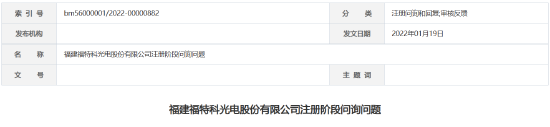 2022年1月7日提交注册,2022年1月19日证监会即公布对福特科注册阶段的问询问题:1、关于内控不规范;2、关于研发人员比例及费用。