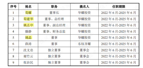 董事、副总经理姚志中是荀耀的舅舅;