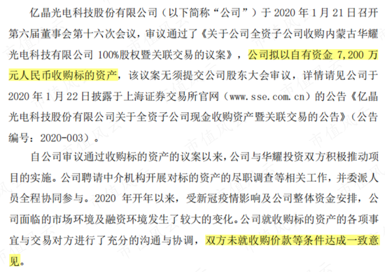 甚至早在2020年1月,亿晶光电想用7,200万,收购内蒙古华耀光电科技有限公司(华耀光电前身)100%股权,最后因价格没谈拢而终止。