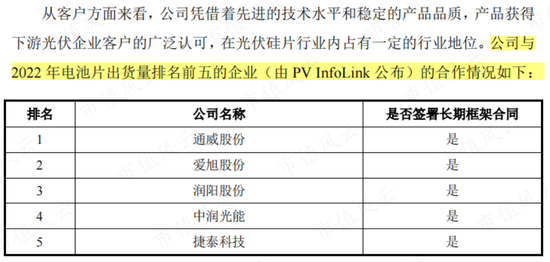 此外,华耀光电与2022年电池片出货量前五企业均签署了长期框架合同,其产品技术得到下流主流厂商的验证。